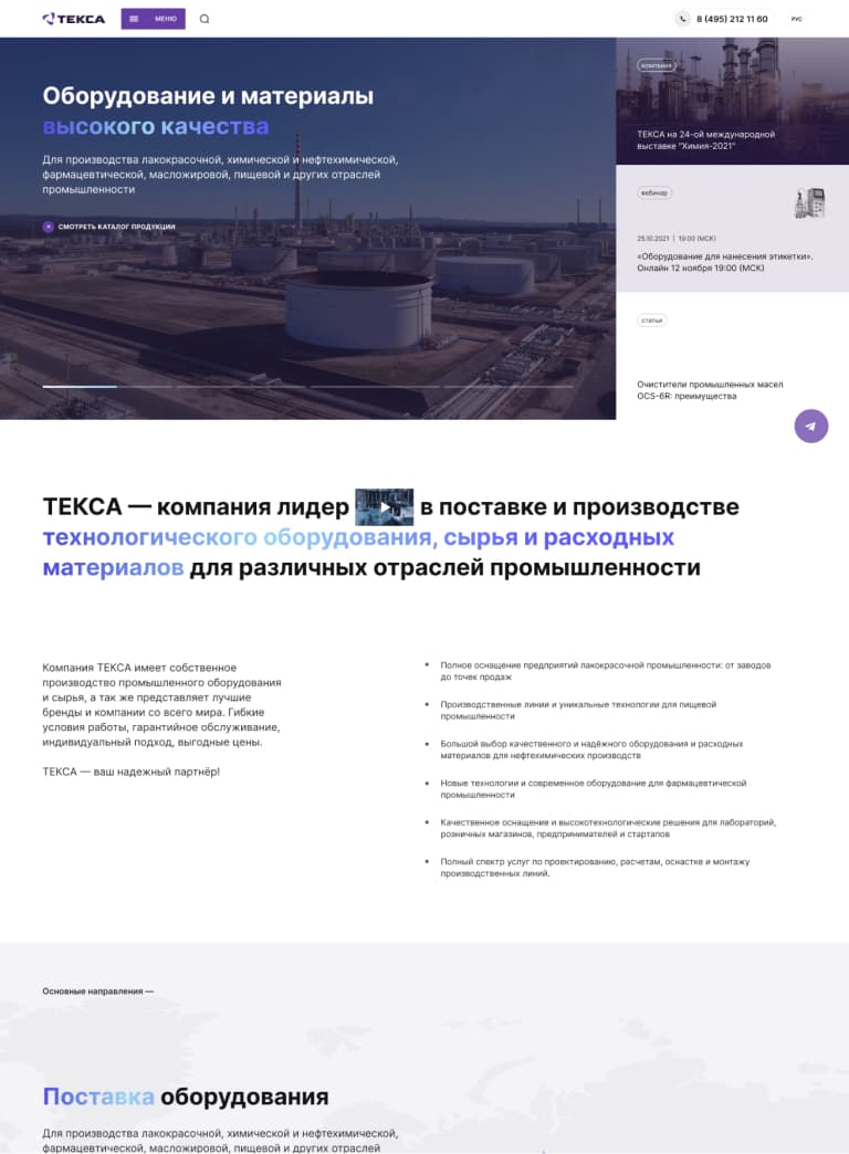 Корпоративный сайт производителя и поставщика промышленного оборудования